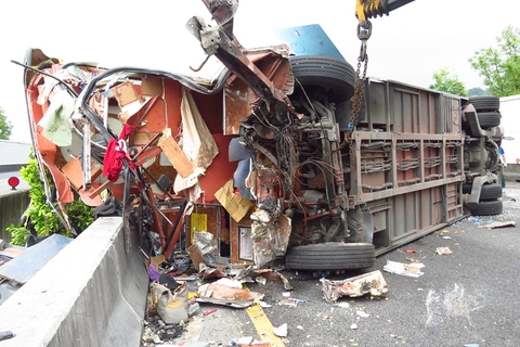 【财新网】(记者 徐和谦)一辆载有26名大陆赴台游客的游览车,4月25日下午1点多,在台湾中山高速公路的苗栗县路段发生翻覆事故。驾车的台籍游览车司机当场丧失生命迹象,受伤的26名大陆旅客、1名导游和追尾的砂石车司机,被分别送至事发当地附近的苗栗医院、大千医院与为恭医院等3家医疗机构。