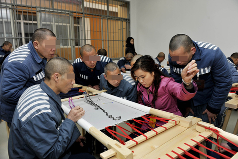 01 3月14日,四川省锦江监狱服刑人员在学习蜀绣技术。 安源/中新社