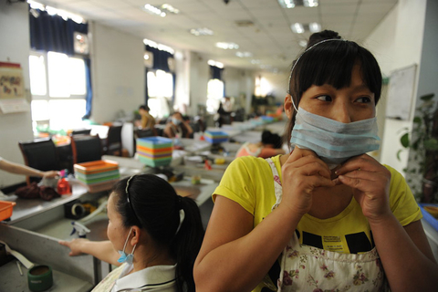 01 4月30日,重庆电车公司,点钞员戴上口罩,准备上班。渝友/CFP