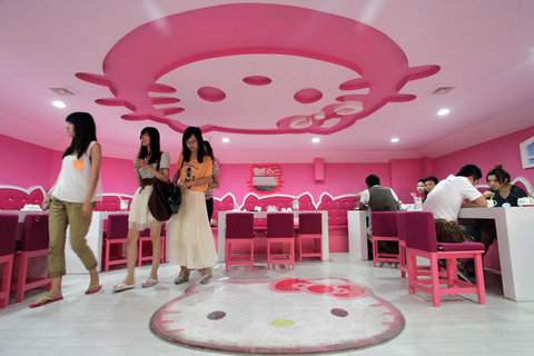 风靡世界拥有无数粉丝的Hello Kitty终于“落户”西安。5月17日,西安市高新区一家主打Hello Kitty主题风格的餐厅,吸引了不少慕名而来的年轻人。整个餐厅的风格不仅粉嫩、可爱,甚至桌椅和餐具调料盒也充满了Hello kitty元素,因此格外受到年轻女性的青睐。Hello Kitty是日本三丽鸥公司1974年推出的经典玩偶形象,30多年来一直经久不衰。
