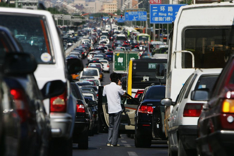 01 2007年5月18日,北京,一位司机走下车,无奈的看着前方拥堵的车流。 Cancan Chu/Getty Images/CFP