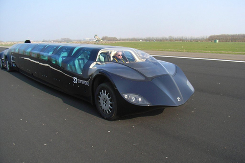 这是由荷兰研发的迪拜超级巴士,采用高科技环保技术,运行动力全部来自由荷兰代夫特理工大学研发的锂电池组。巴士身长15米,宽2.5米,高1.65米,配备8扇鸥翼式车门,最高时速可达每小时250公里。