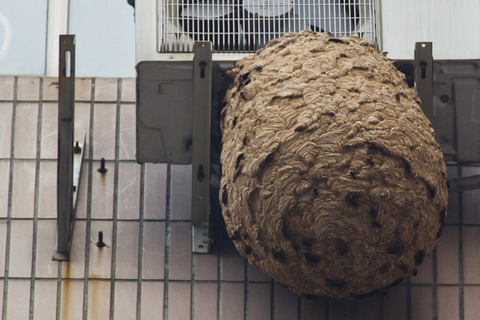 04 10月28日,上海芷江中路一高层住宅楼空调外挂机下的巨型马蜂窝。 Penny/东方IC