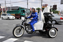 当地时间2012年8月29日,一名女性驾驶着一辆“马桶摩托车”。 YOSHIKAZU TSUNO/东方IC