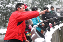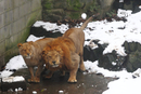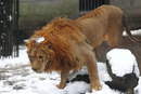 杭州游客用雪球扔狮子 狮子惊吓躲闪