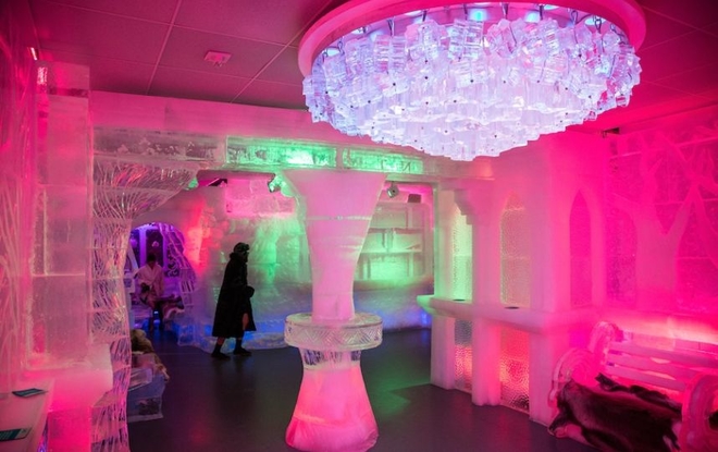据俄罗斯《都市日报》7月10日消息,纽约首家冰酒吧在曼哈顿正式开业。为建造这一独特的冰酒吧,酒吧老板特意从加拿大运来90吨的冰。酒吧内部的吧台、桌子、椅子,甚至是盛放酒水和饮料的杯子都由冰制而成。