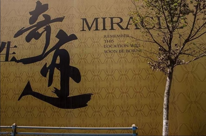 呈贡的一个广告牌,上面写着大大的“奇迹”二字。