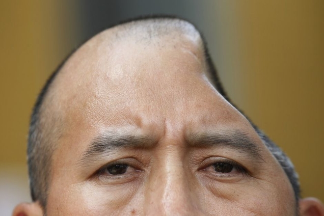 7月1日,43岁前油漆匠查吉(Antonio Chaj)在洛杉矶召开发布会。由于在一家酒吧遭击打,他的一半头骨永久凹陷,脑健康遭严重破坏失去语言能力。Torrance高等法院陪审团裁决他获5800万美元(约3.5亿人民币)赔偿。图为查吉头部特写。 图片来源:美联社