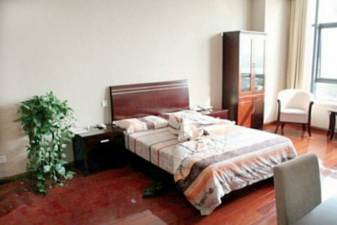 【30平米的休息室】江苏省沛县县委、县政府办公大楼装修豪华,县主要领导办公面积严重超标,大多在100平米以上。当地人称其高大、奢华,可媲美“联合国大厦”。图为领导办公室内约30平米的休息室,配有双人床、书柜、沙发等。