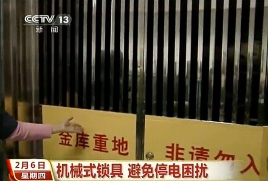 1号金库是这里三个金库中最大的一个,两扇门有两米多高,近三米宽,为了保证金库安全,大门采用了机械式锁具,不怕停电。在打开金库大门之后,里面还有一扇金属防盗门,这还需要第三个工作人员持有钥匙才能打开。
