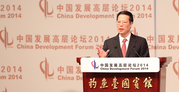 据新华社消息,3月23日上午,中国发展高层论坛2014年年会在北京开幕。中共中央政治局常委、国务院副总理张高丽出席开幕式并致辞。