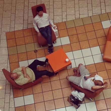 在相片分享平台Instagram上,一个名为“陪他们的女伴购物:痛苦的男士”的账户,收集了多张世界各地男士等候妻子或女友购物的照片,照片中他们显得很疲惫,百无聊赖排排坐在服装店內外,部分人玩手机刷微博打发时间,有的人则呼呼大睡。
