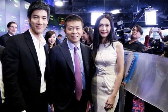 姚晨、王力宏、曹国伟上市仪式现场合影。 图片来源网络