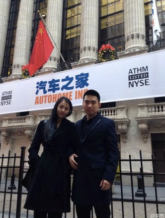 80后创业代表李想,也带了太太到纽交所门前合影。 图片来源网络