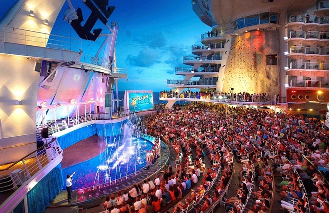 海洋绿洲号上有可容纳750人的竞技场,还有高台跳水表演场地。 图片来源网络