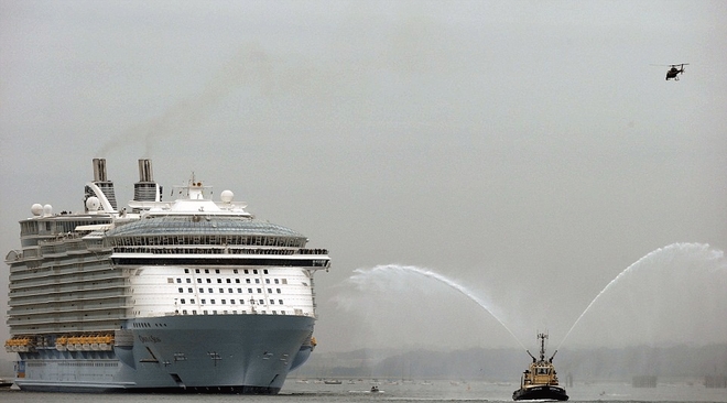 邮轮大小为“泰坦尼克”号的5倍,连美国军方“尼米兹”级航空母舰都相形见绌。 图片来源网络