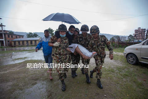这是尼泊尔震后第四日。位于加德满都东部20公里的Sankhu,地震已过去72小时,灾民仍未收到来自政府的食物和医疗救济,全靠当地民众自救和外国救援队简单的医疗救助。