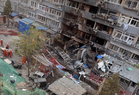 事发小区居民对财新记者介绍,该小区本周一直在进行上下水道的改造工作,应该是施工方挖断燃气管道,导致了这起剧烈爆炸。