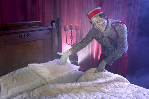 2009年12月30日,美国佛罗里达州,一名服务员在整理航天飞机旅馆的床铺,旅馆内床的造型是一架航天飞机,墙壁上则绘有浩渺的宇宙,让旅客有置身太空的感觉。 GEORGE SKENE/东方IC