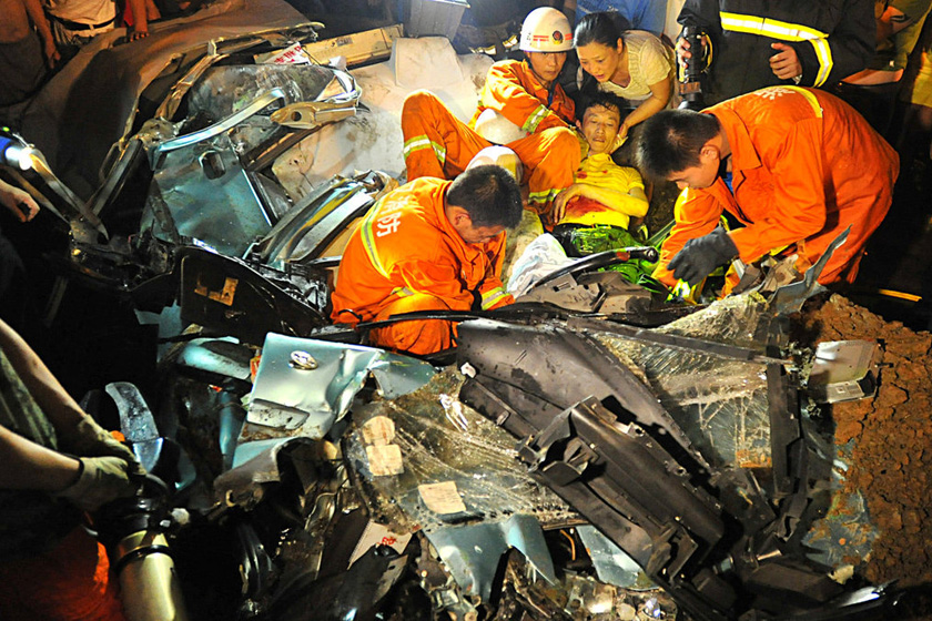 新华社记者从郑州市政府获悉,24日凌晨2时30分左右,郑州航空港区一辆水泥罐车意外侧翻,砸塌路边工棚,导致8人死亡6人受伤。(新华社记者秦亚洲)