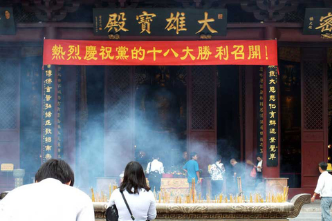 11月6日,大佛寺内横挂迎十八大条幅。 刘蛟/CFP