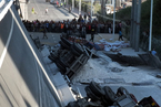 两位桥梁专家从现场情况初步判断,当时桥上的四辆货车载重,已超出该段桥梁设计载重数倍,大桥断裂可能与货车严重超重有关