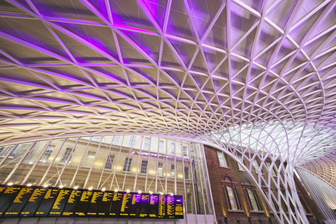 英国伦敦为迎接2012伦敦奥运重新设计改造的国王十字车站,JohnMcAslan为西大厅设计了一个跨度150米、覆盖整个半圆形西大厅的白色网格顶篷,这几乎是欧洲最大的单跨车站结构。 东方IC