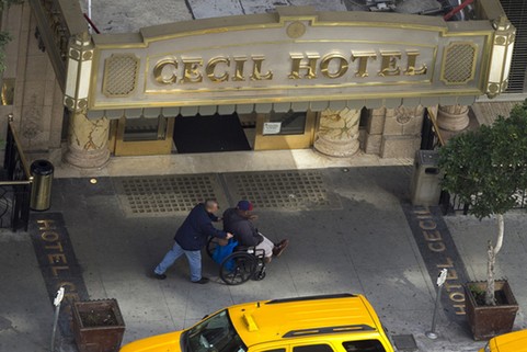 塞西尔酒店:多次发生凶案已成旅游景点。地时间2013年2月21日,美国洛杉矶塞西尔酒店,华裔女孩蓝可儿在顶楼水箱诡异身亡。塞西尔酒店有约700间客房,房客以大学生和游客为主。此外,酒店还有大量无家可归的长期住户。 Damian Dovarganes/东方IC