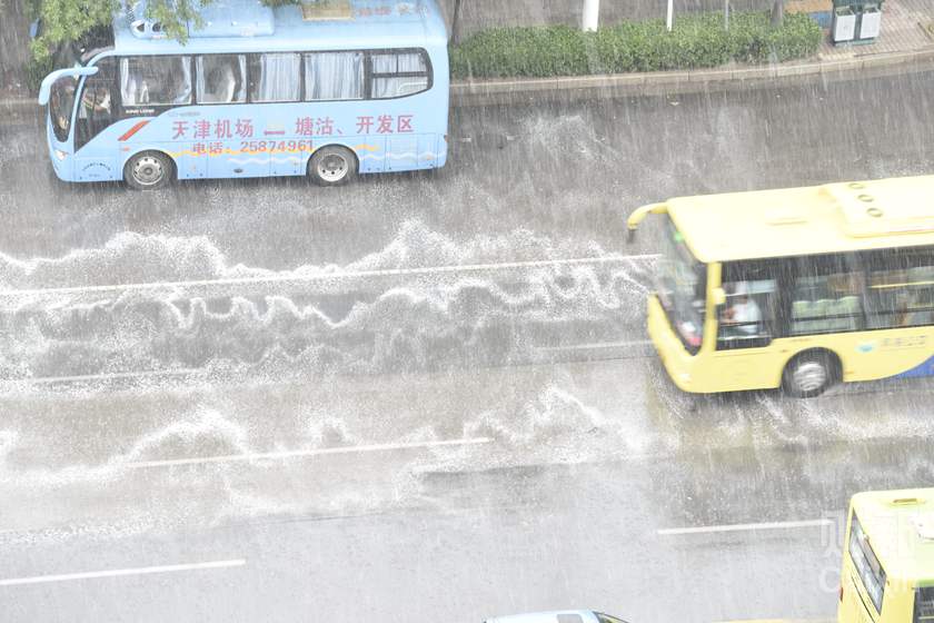 【财新网】(记者 于达维 任波 赵晗)8月18日上午,天津滨海新区出现短时暴雨,财新记者在滨海新区黄海路第一大街路段,观察到路面出现了大量异常的白色泡沫。目前,还不能确认这是否来自爆炸现场的氰化钠或其他危险化学品。