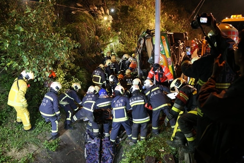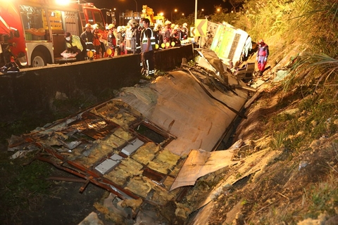 消防署接台北市消防局通报,13日21时6分许,在台湾公路主干道5号南港系统交流道接3号南下路段,台北市蝶恋花公司一辆游览车翻覆于引道边坡,车内共44人(游客42人,导游、司机各1人),其中死亡32人(30人未送医,2人送医后不治),12人送医持续治疗中。