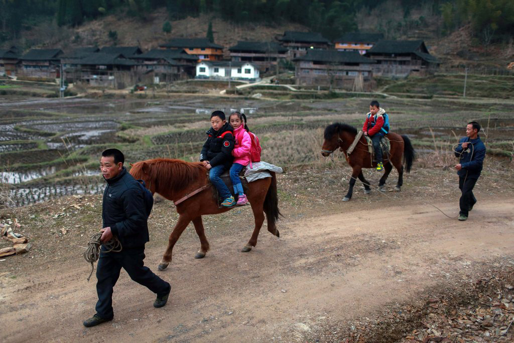 章得胜的两个孙子和一个孙女在当地念小学。村民们接到通知,孩子们要被转移到教学条件更好的学校读书。然而这样一来,原本只要步行十分钟的上学路,就要变成十公里远。